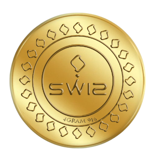 Certified Purity: Each 4g Swiz Jewels gold coin is crafted in 22KT (916) BIS hallmarked gold, assuring customers of authenticity, quality, and purity.